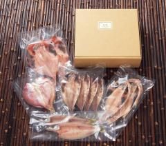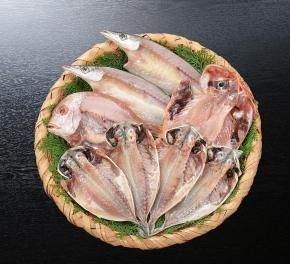 干物の王道の真あじ、白身魚の代表格のかます、クセのない味わいのれんこ鯛、定番人気の金目鯛を詰め合わせしました。